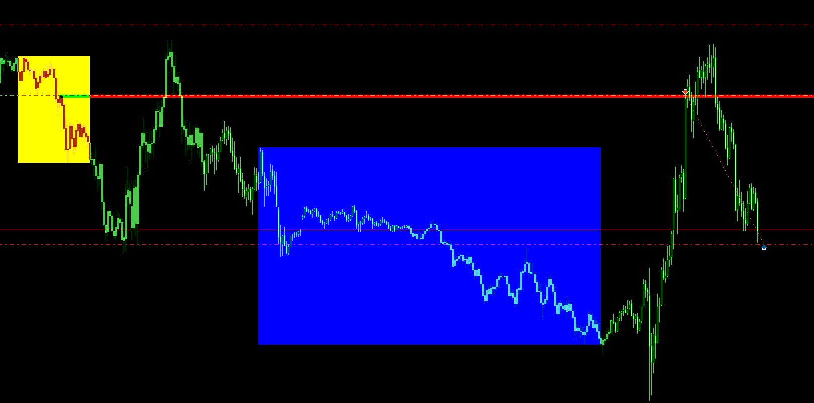 El JEFE recoge datos a las 9:30 en NY. Aquí se recoge el rango y las zonas de oferta y demanda. Además se preparan las posiciones de forma que cuando el precio rompa cualquiera de las zonas se abran las operaciones.
